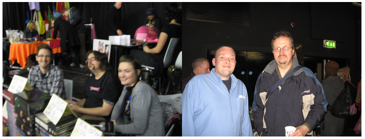 Publicity-shy cartoonist and ex-reviewer John Robbins briefly made his second festival appearance in a decade and help us set up our stall. I met lots of active small pressers whose names I didnt know, which I’m inclined to think is a good thing. Differing from the cosplayers of traditional Comicon standard, the venue was populated by sexy anarcho socialist feminist zinesters with dreads and piercings and tarots and woolens. Behind my swearing robot comix collections was a Vegan cake stall and next to us, the sale of Palestinian hand crafted items by the Irish Solidarity Group. Not a Stormtrooper in sight! This gave me happy memories of Camden, dealing comics to a varied crowd who hadn’t necessarrilly come in search of them. I was selling around ten comics an hour and my voice became hoarse.