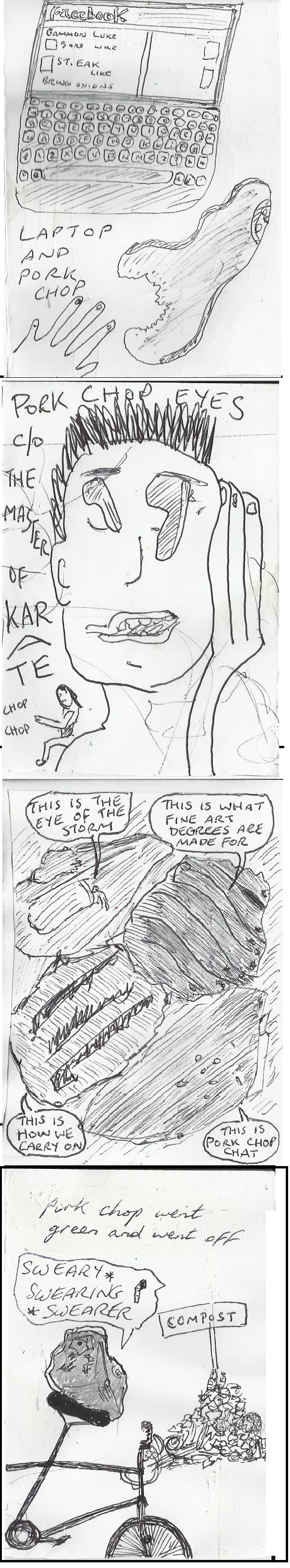 Why pork chops?? A conversaton with GarethJam, led to his producing a pork chop from his fridge freezer which he showed off with great pride, and no plate.